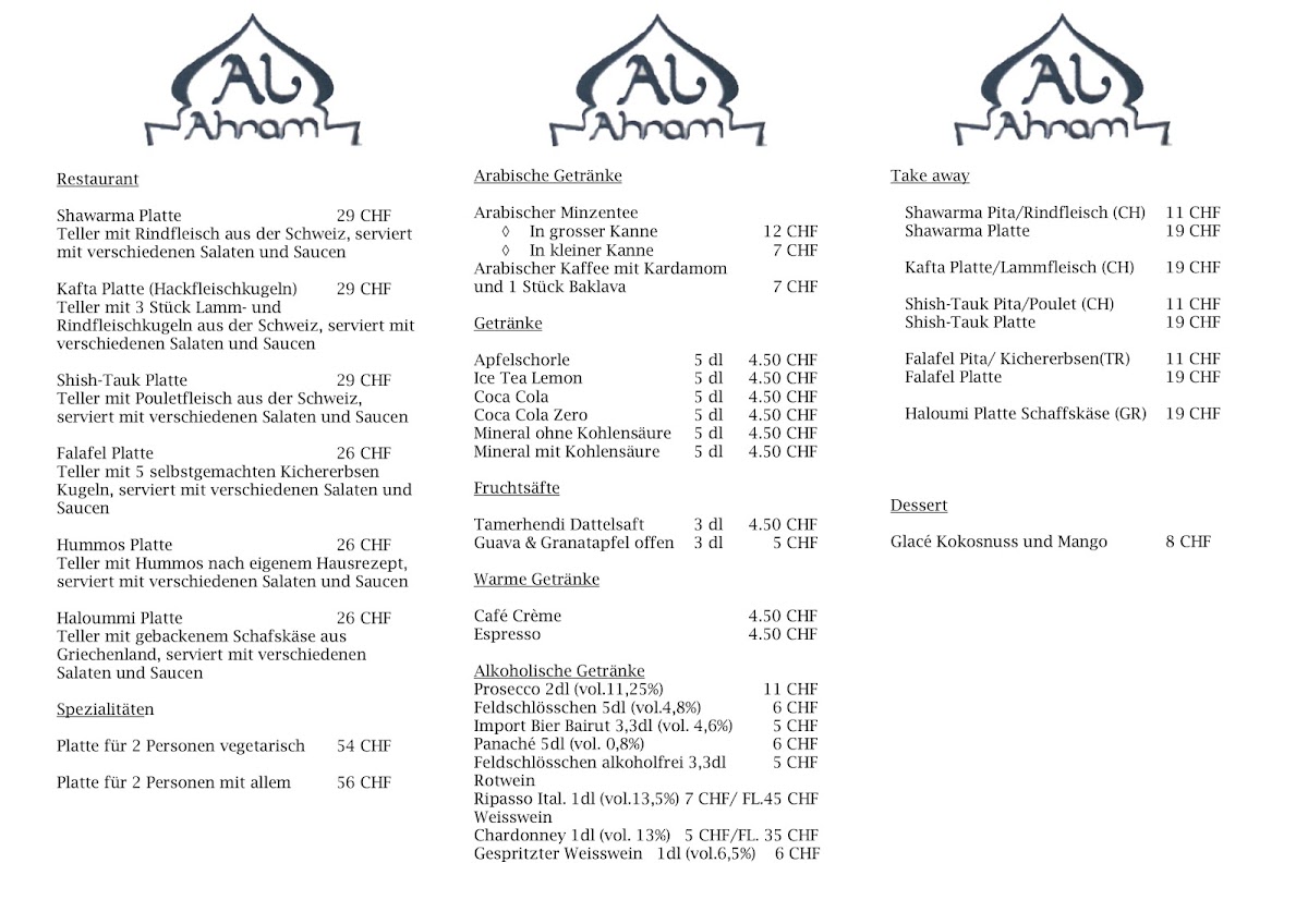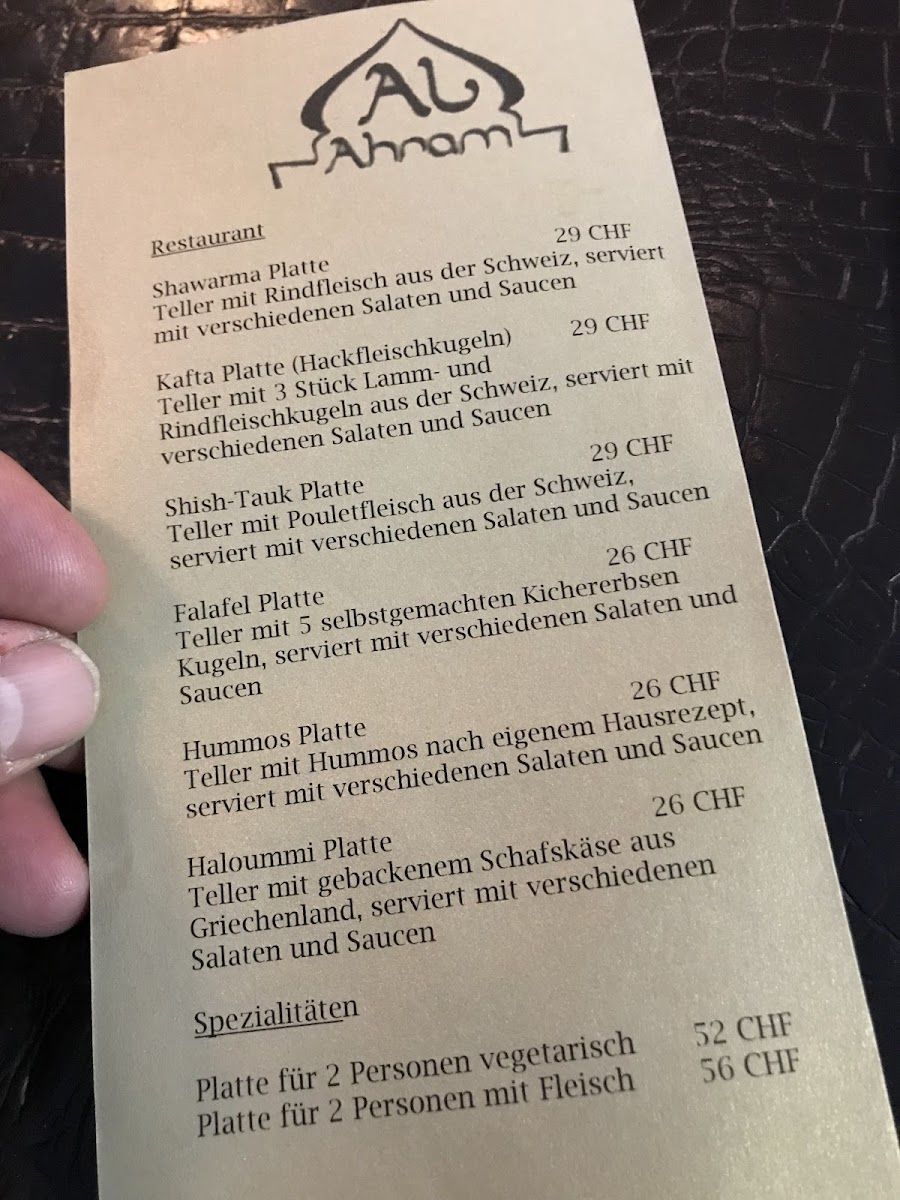 Finally, the Kafta Platte offers juicy, well-seasoned skewers of minced meat, another signature dish of the Middle Eastern culinary tradition. Together, these dishes form a well-rounded menu that blends rich flavors, freshness, and variety, ensuring there is something for everyone to enjoy at Al Ahram Restaurant.
